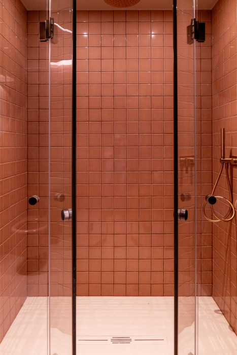 Bagno accessibile a persone con mobilità ridotta (doccia, lavandino, WC)